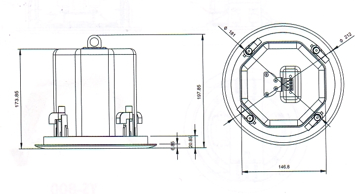 Габариты - диаметр 212мм, высота 198мм ( установочный диаметр 181мм)