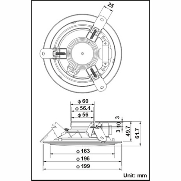Габариты - диаметр 199 мм, высота 62 мм, (установочный диаметр 163 мм)