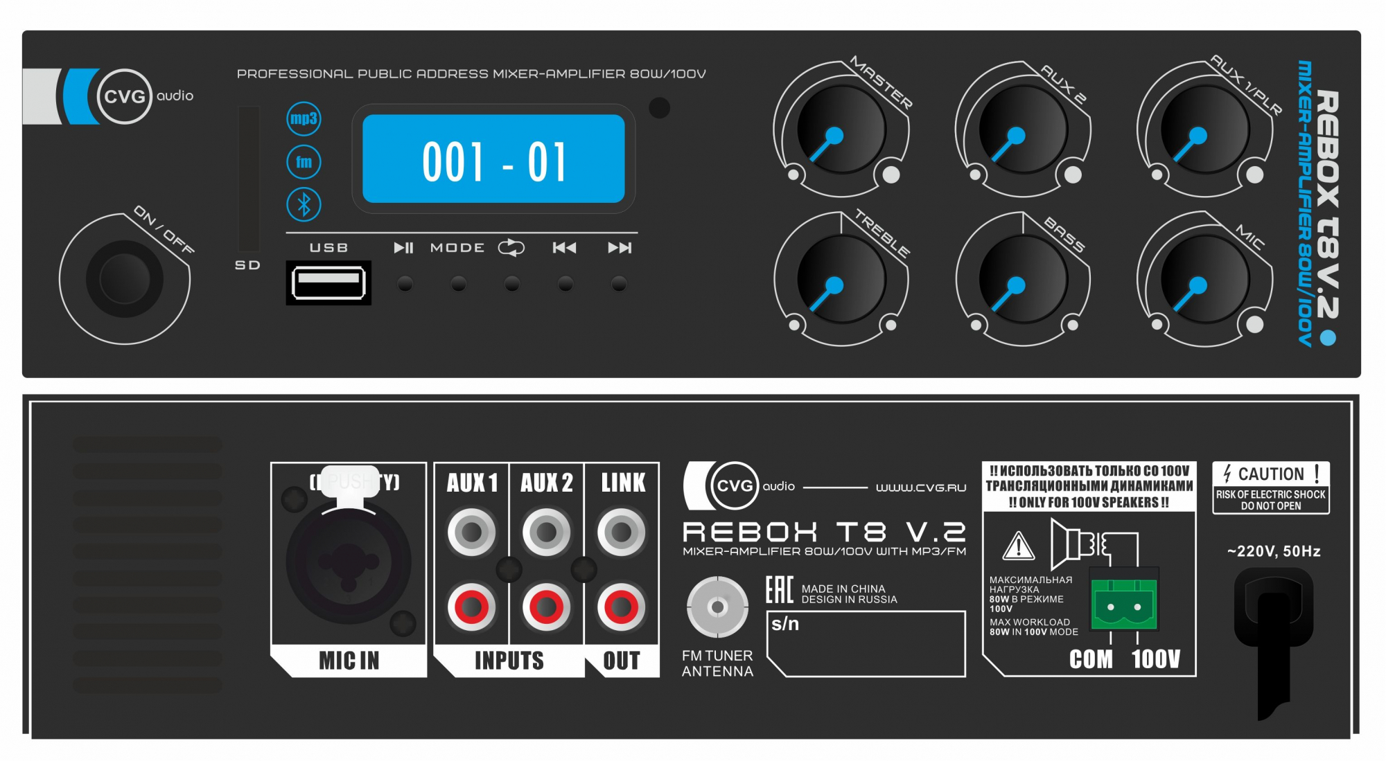 CVGaudio ReBox-T8 Микшер-усилитель с встроенным MP3, 80Вт, 100В