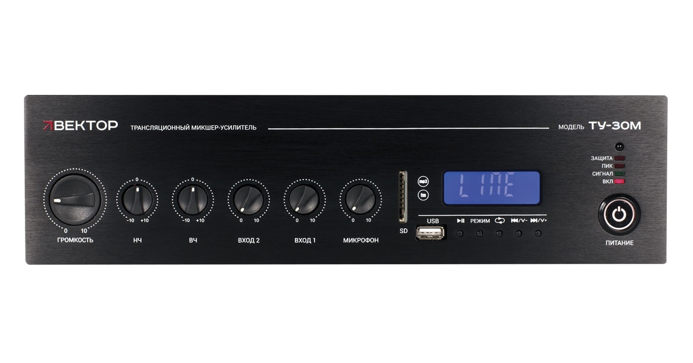 ВЕКТОР ТУ-30М Микшер-усилитель 30 Вт со встроенными источниками аудио сигнала: MP3-плеер, FM-тюнер, USB, SD, Bluetooth