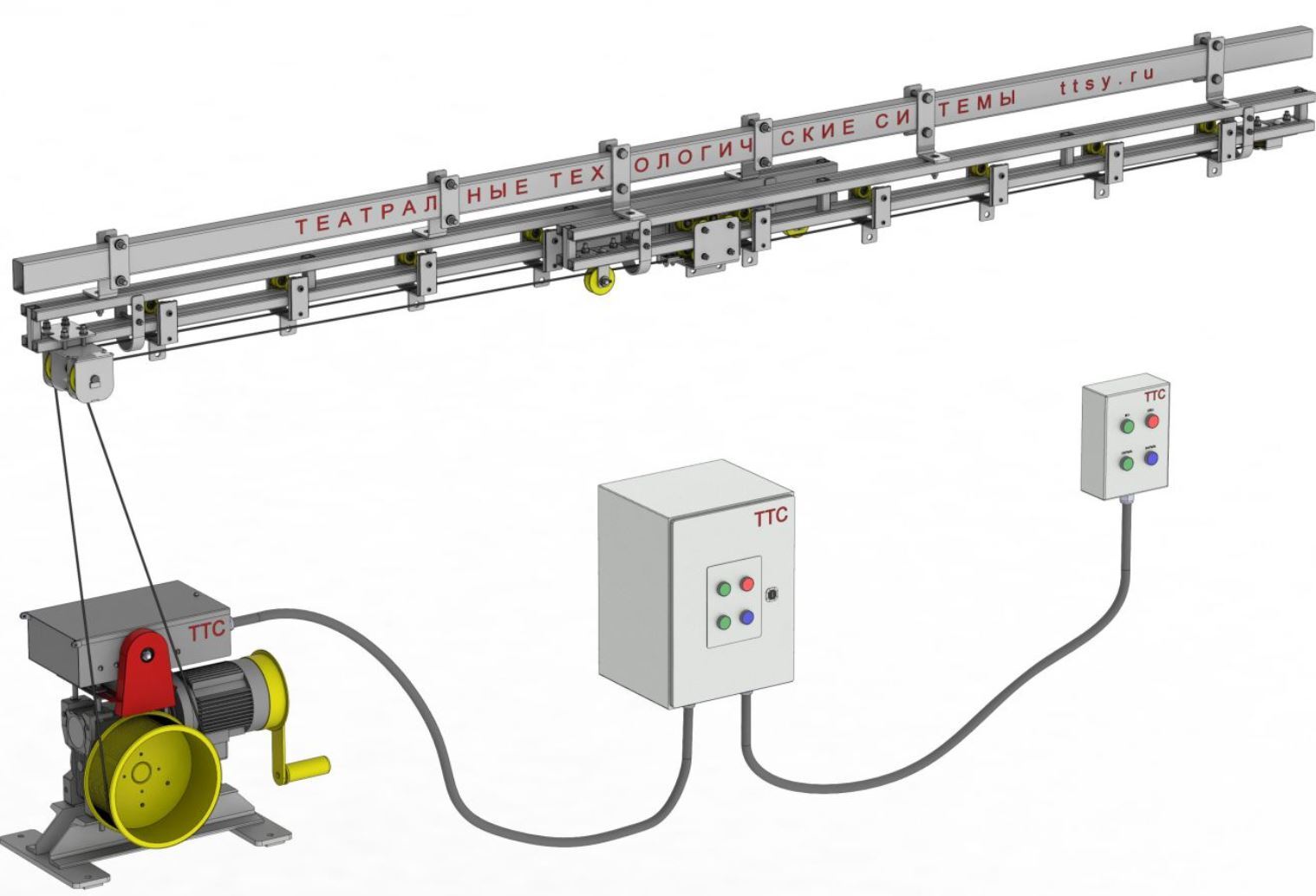 5. Лебедка ручная для раздвижки занавеса барабанного типа с натяжным устройством и установочной напольной рамой в комплекте