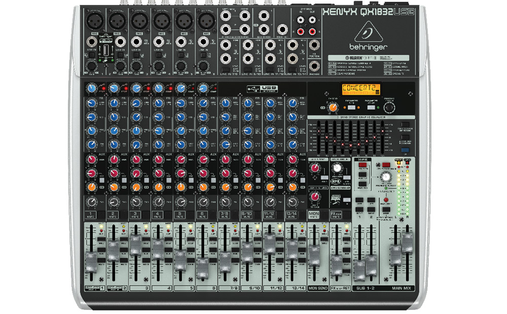 BEHRINGER QX1832USB - микшер, 18 каналов, USB/аудио интерфейс, мик предусил и компр, 9 EQ, Multi FX