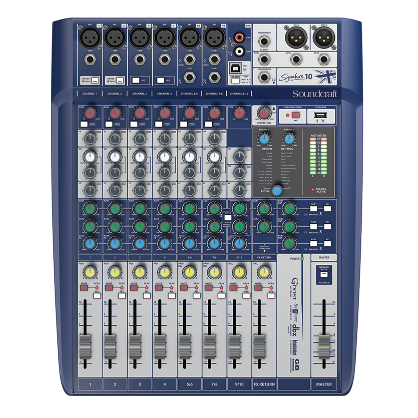 Signature 10 – высокопроизводительный 10-канальный аналоговый микшер в маленьком формате и со встроенными эффектами. Все микшеры серии Signature объединяют культовые SOUNDCRAFT Ghost микрофонные предусилители, вышедшие из линейки лучших профессиональных пультов для предоставления экстраординарного аудио качества с высоким запасом мощности, широким динамическим диапазоном и необыкновенной четкостью с превосходным соотношением сигнал шум. Кроме того во всех микшерах используется Soundcraft Sapphyre ассиметричный эквалайзер для идеальной корректировки каждого элемента вокала и инструмента в миксе с несомненной музыкальностью, присущей всем пультам компании, плюс технология аудио маршрутизации GB серии, пользующаяся большой популярность в клубах по всему миру.
