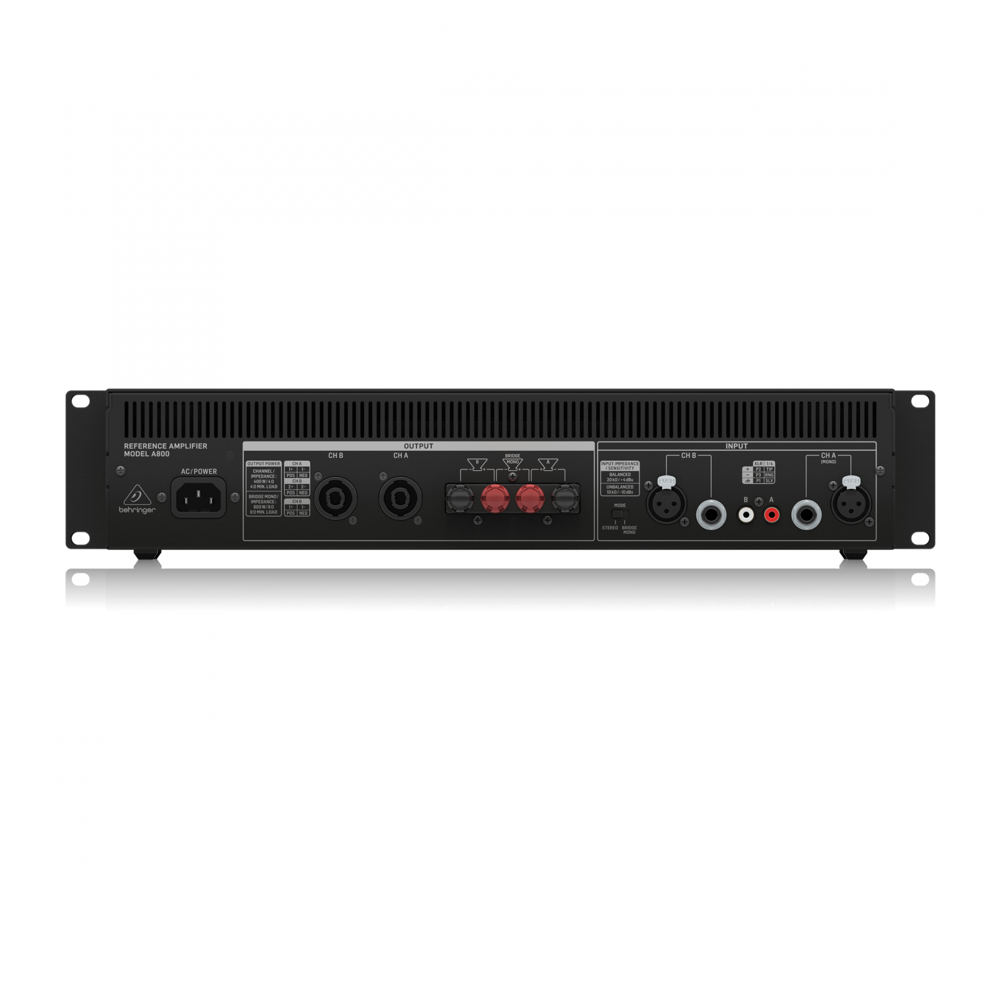 BEHRINGER A800 - двухканальный, ультралинейный усилитель мощности, 2х400Вт/4Ом, 800Вт/8Ом(мост)