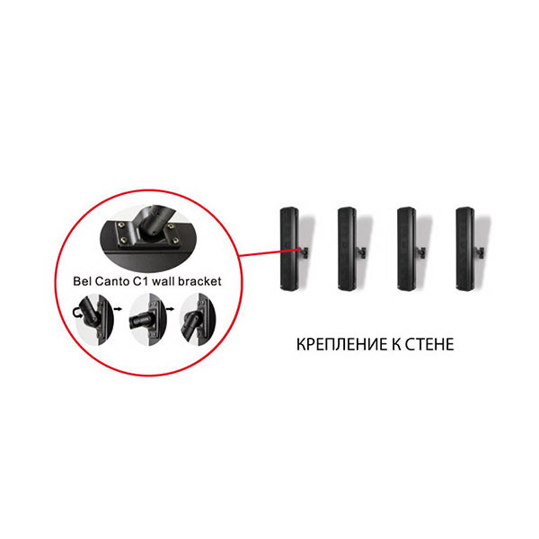 Идя навстречу пожеланиям российских инсталляторов, новая колонна BEL CANTO имеет возможность установки в любой плоскости (кронштейн поставляется в комплекте), а также устанавливается на стойку-треногу.